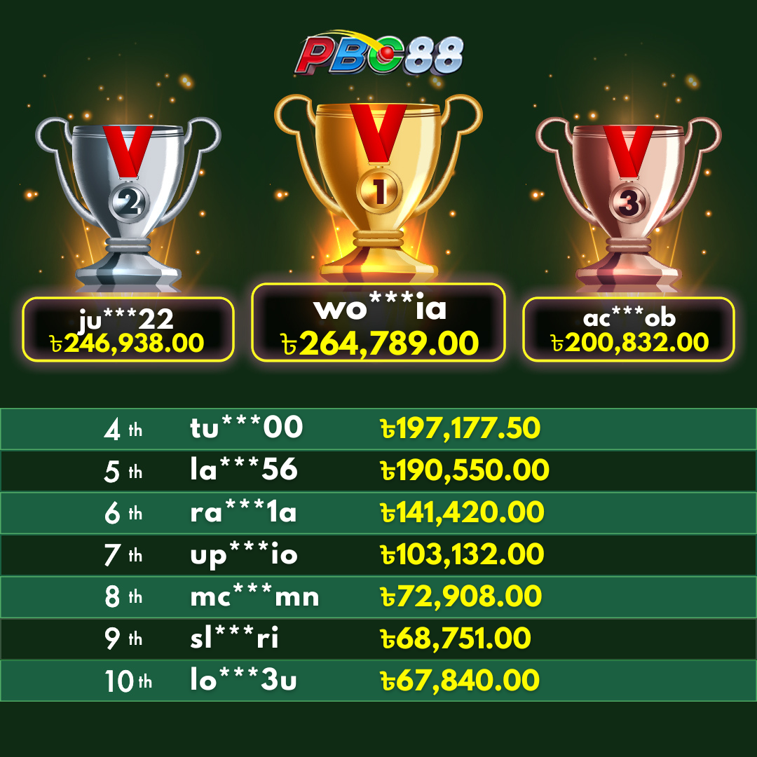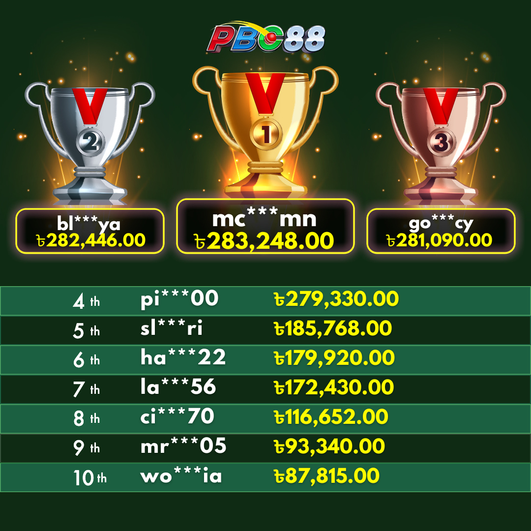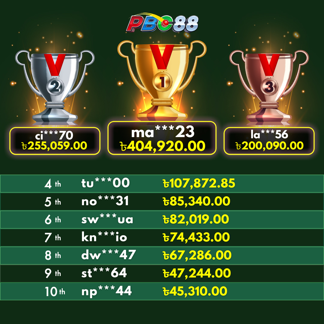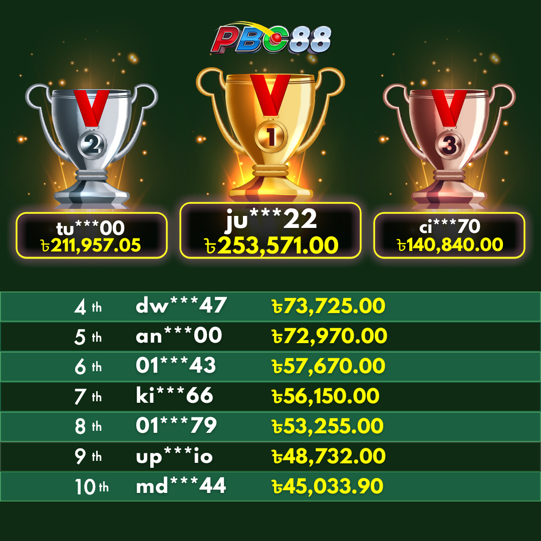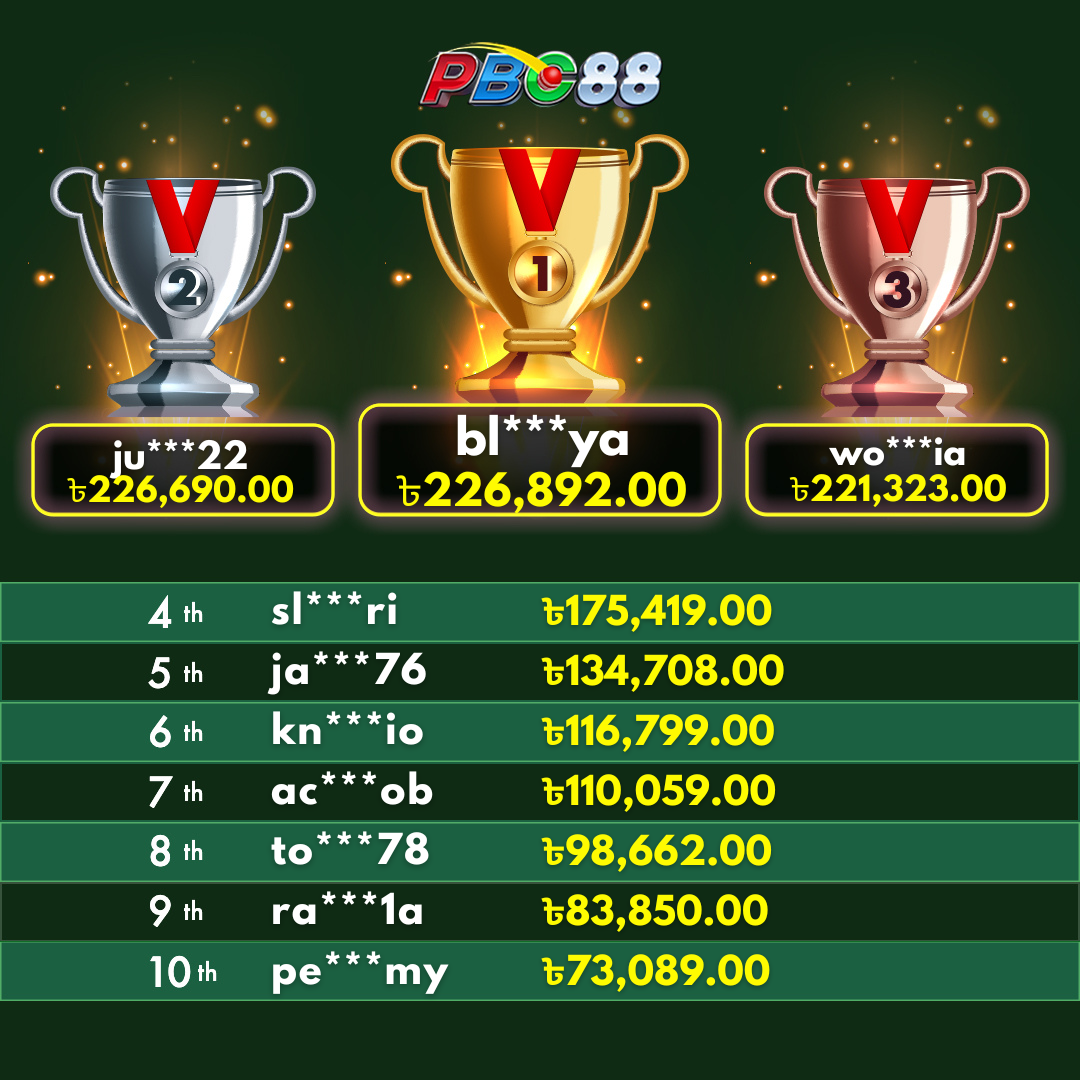 - দৈনিক শীর্ষ ১০ জন বিজয়ীর বোনাস দিনের ১২:০০ টার আগে জারি করা হবে।