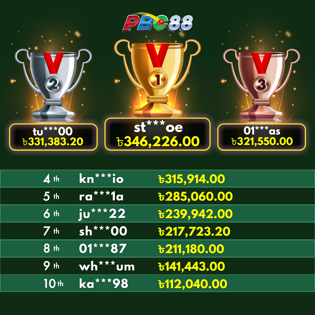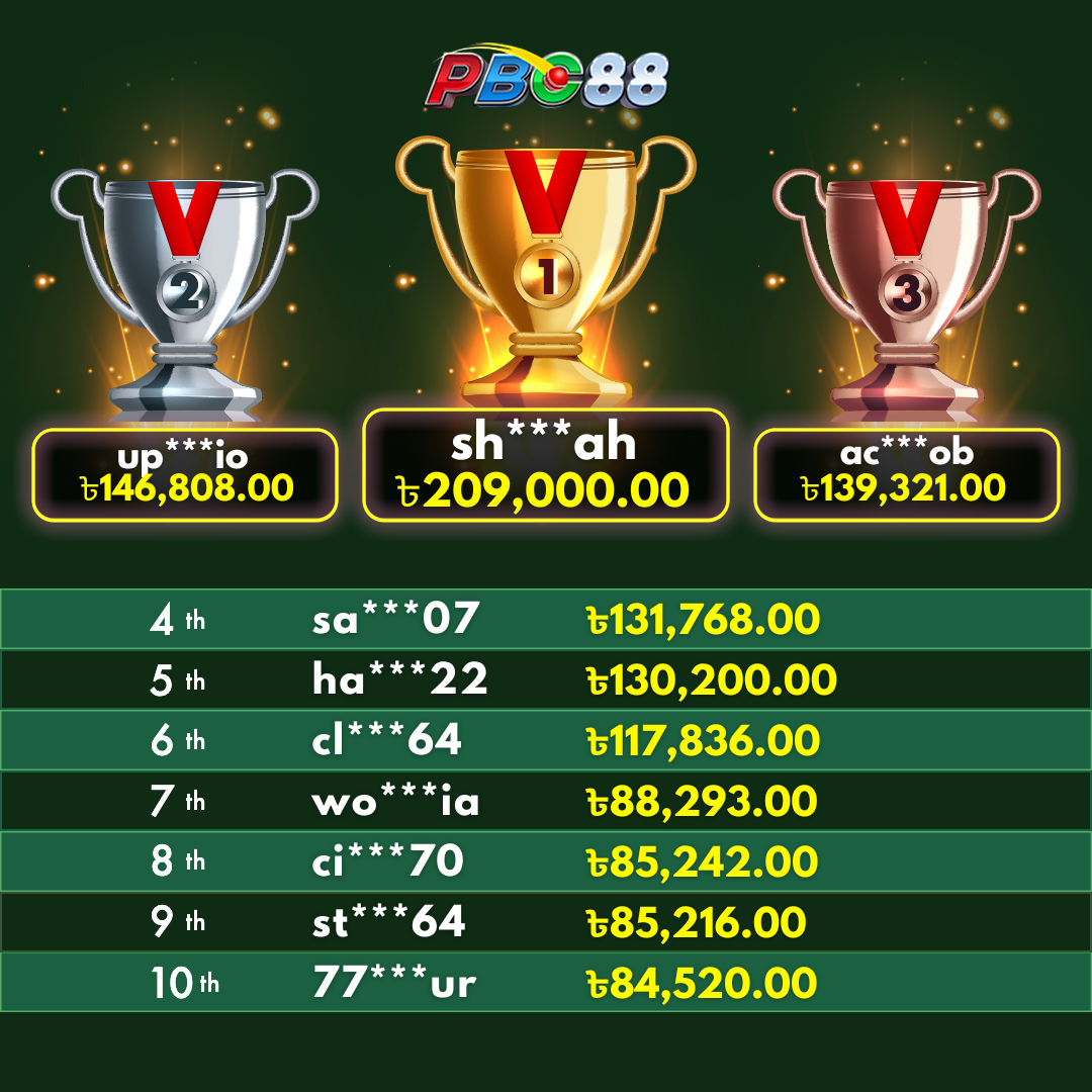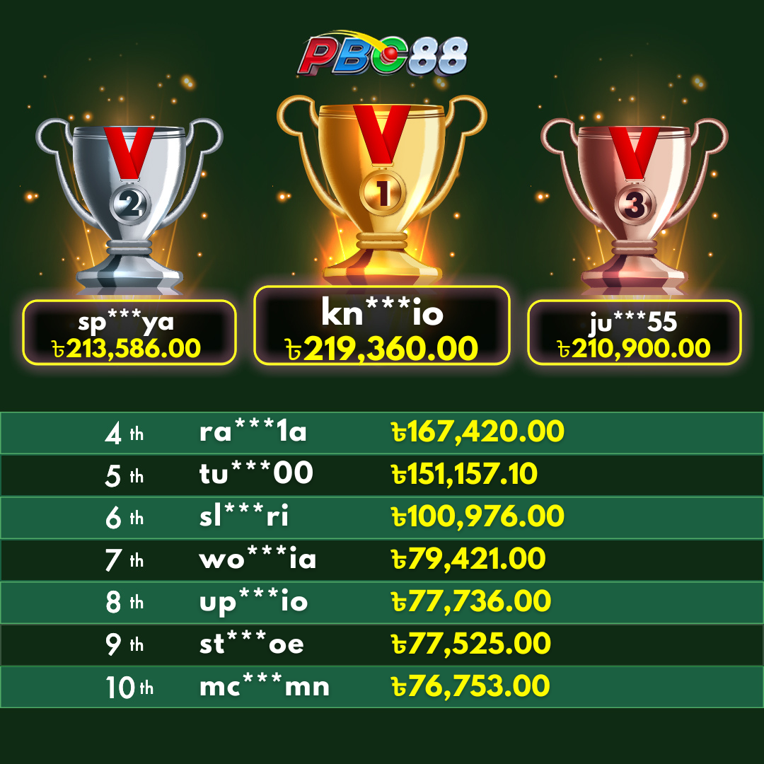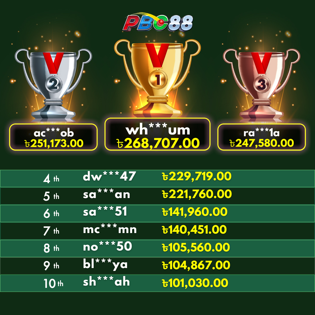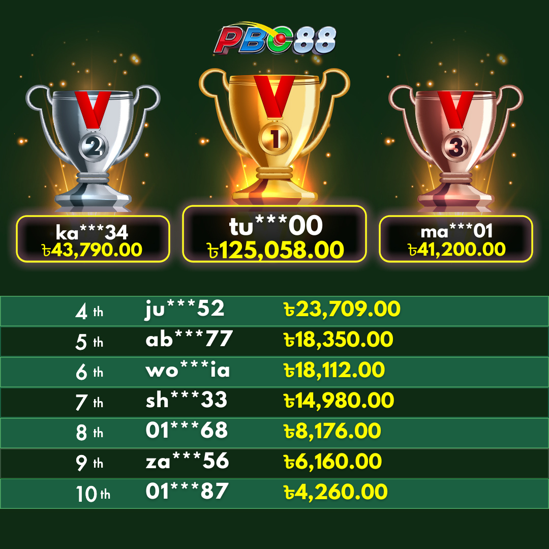 - দৈনিক শীর্ষ ১০ জন বিজয়ীর বোনাস দিনের ১২:০০ টার আগে জারি করা হবে।