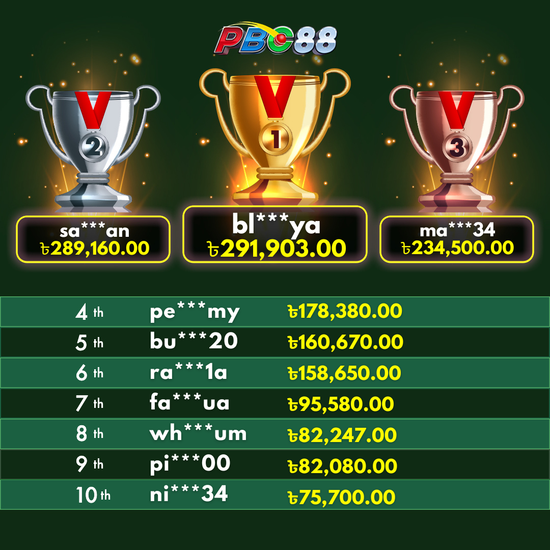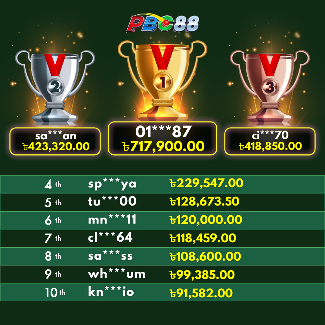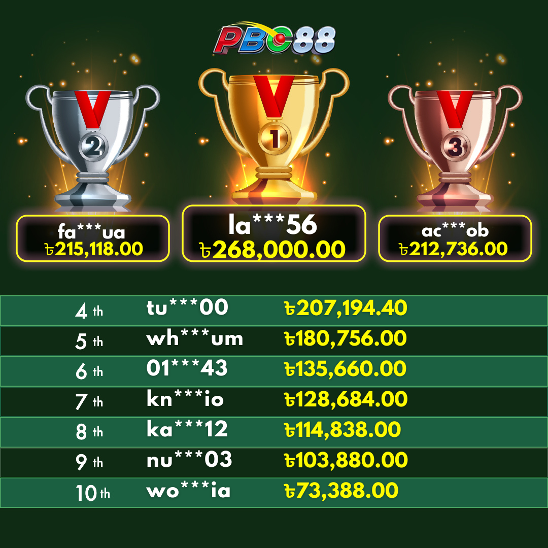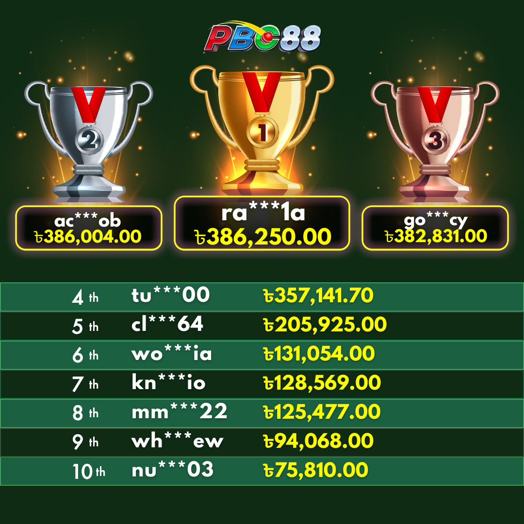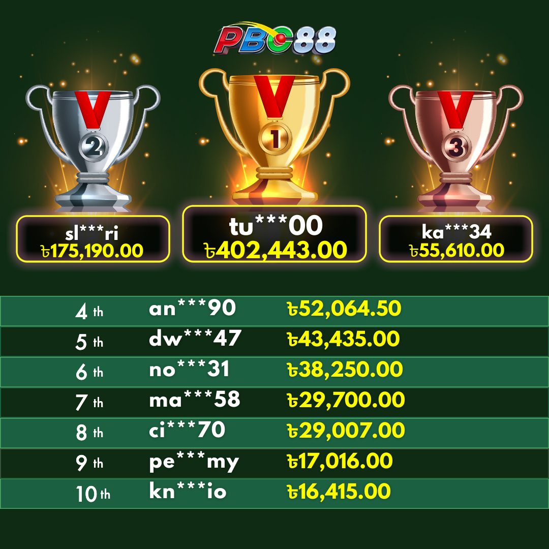 - দৈনিক শীর্ষ ১০ জন বিজয়ীর বোনাস দিনের ১২:০০ টার আগে জারি করা হবে।