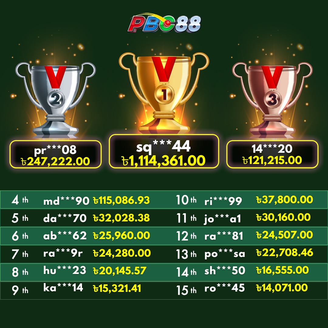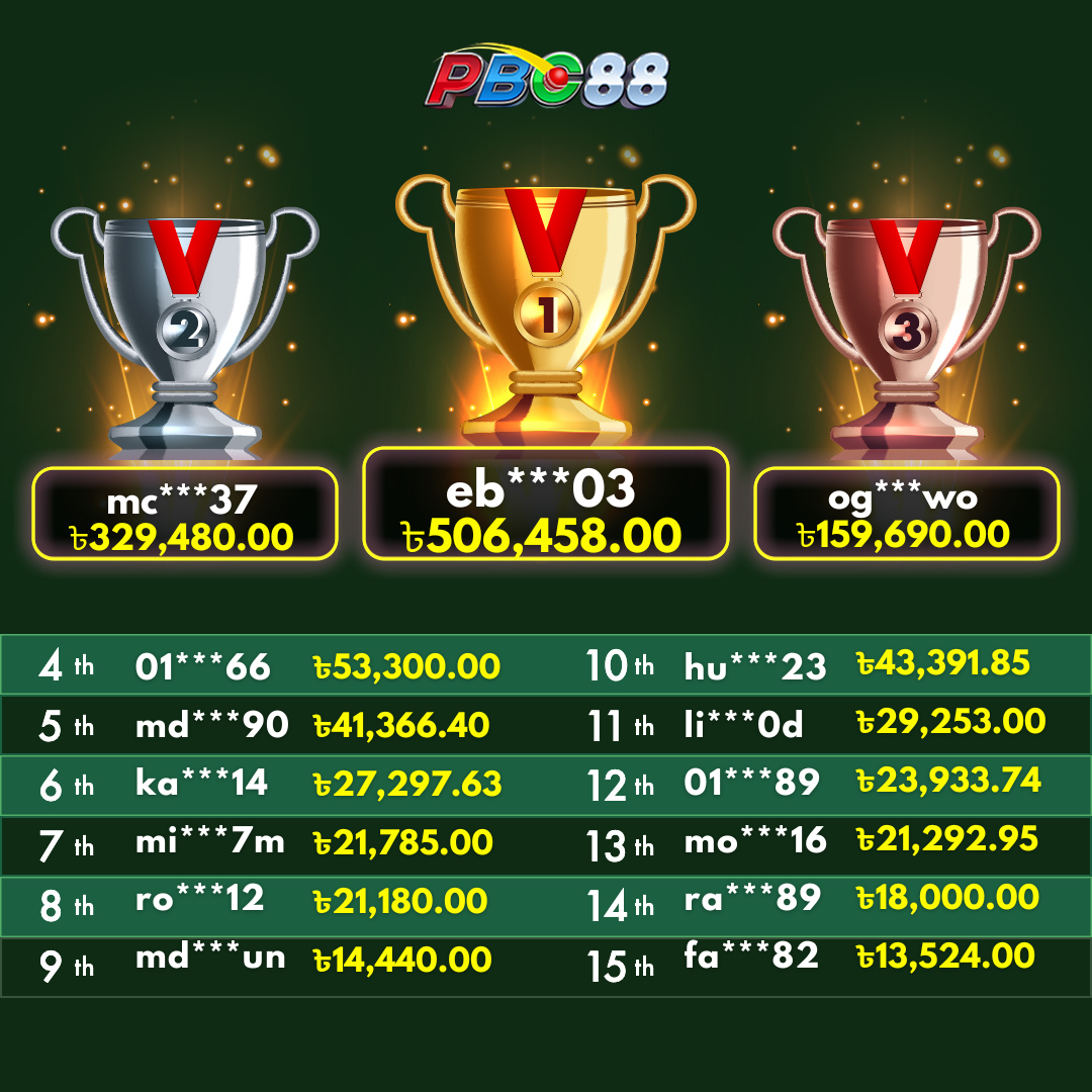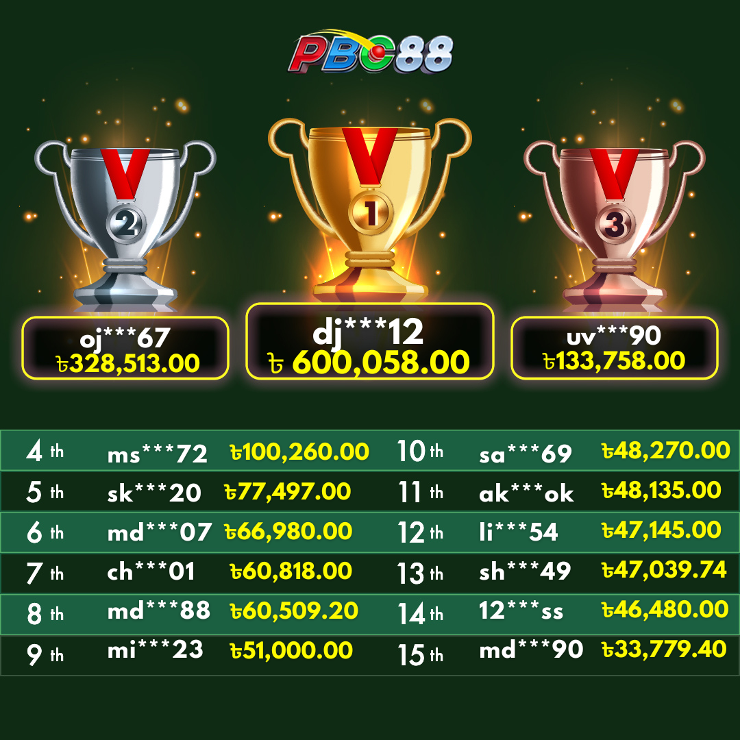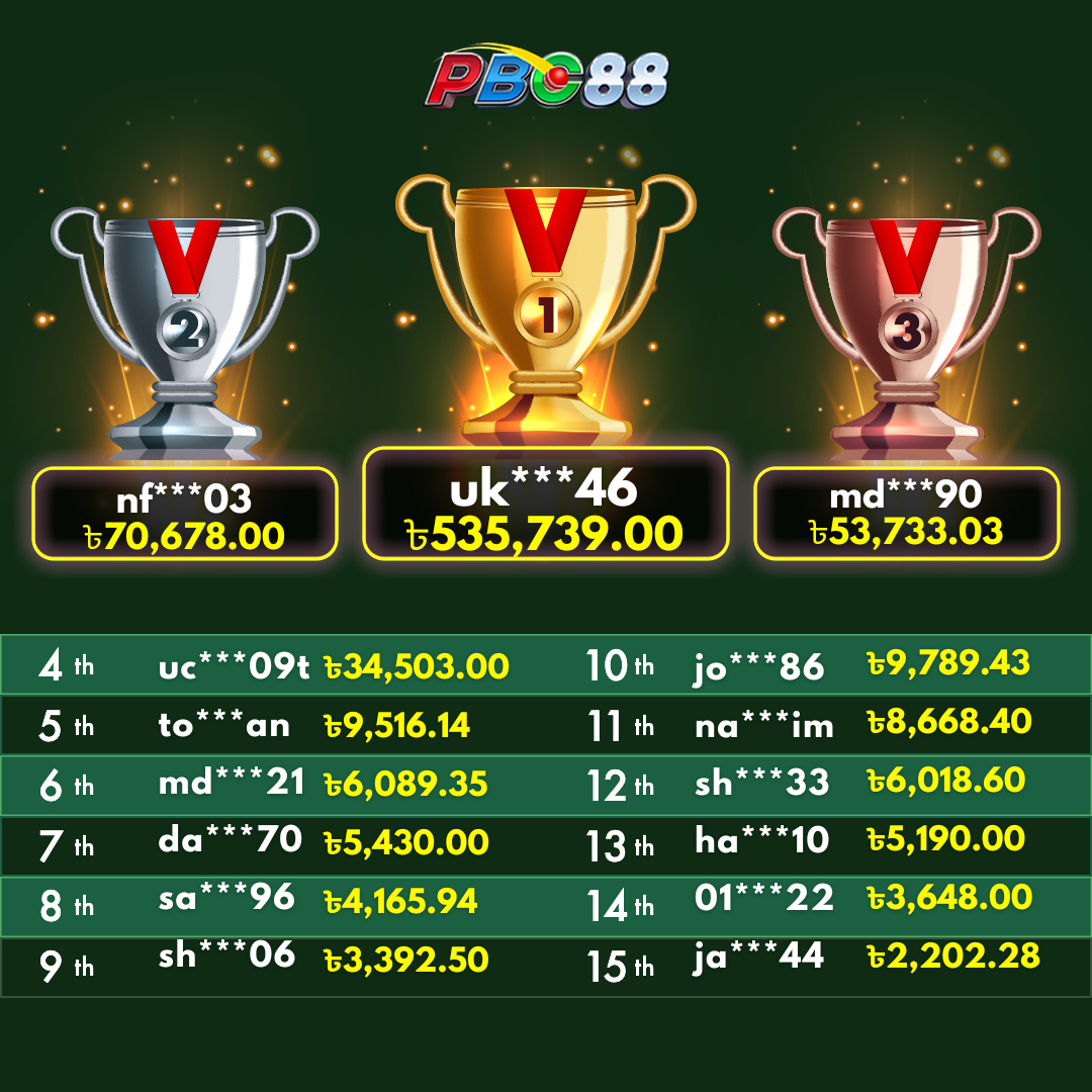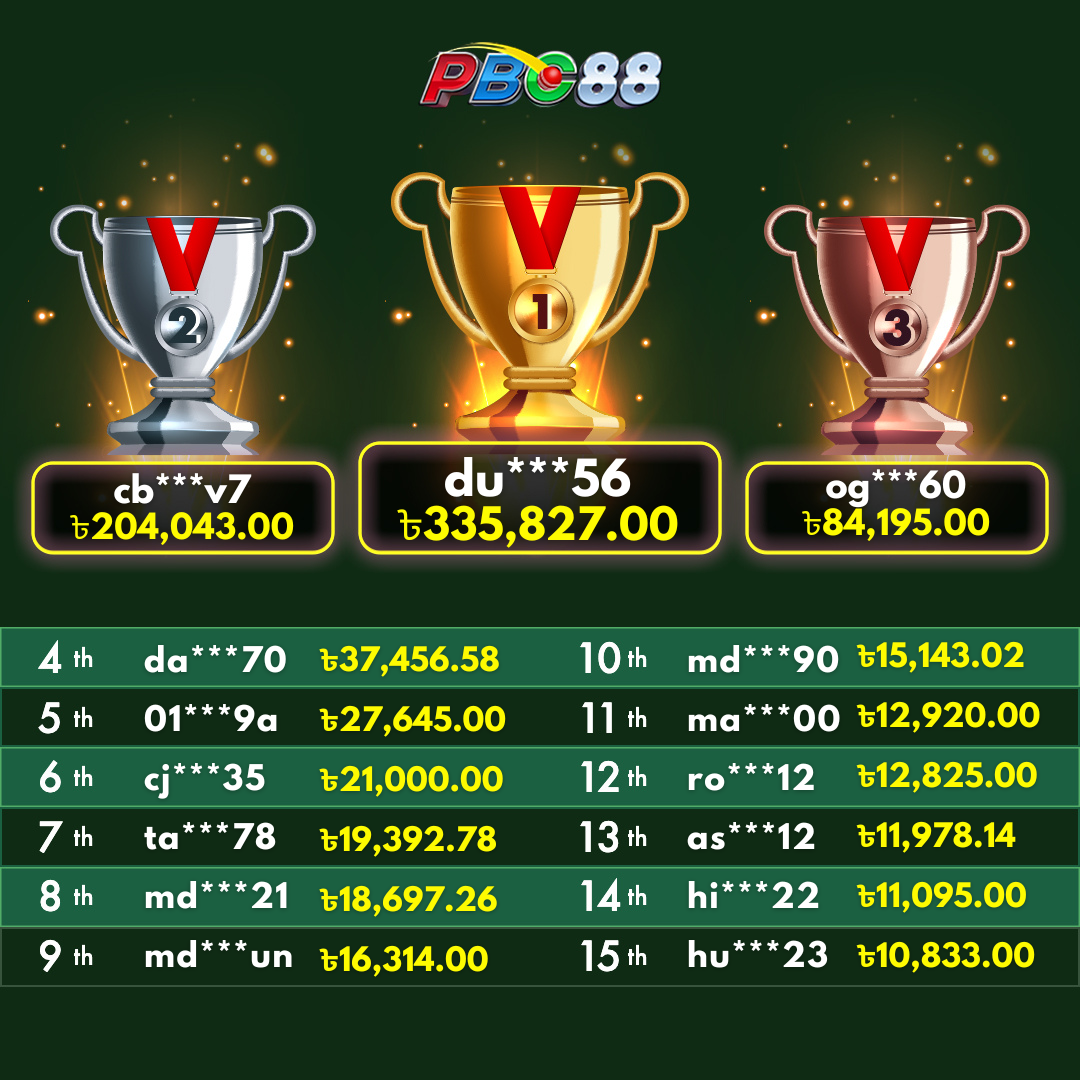 - দৈনিক শীর্ষ ১৫ জন বিজয়ীর বোনাস দিনে ১২:০০ টার আগে জারি করা হবে।