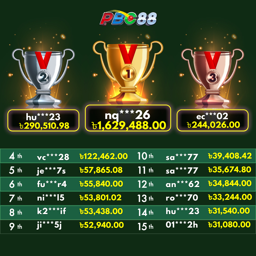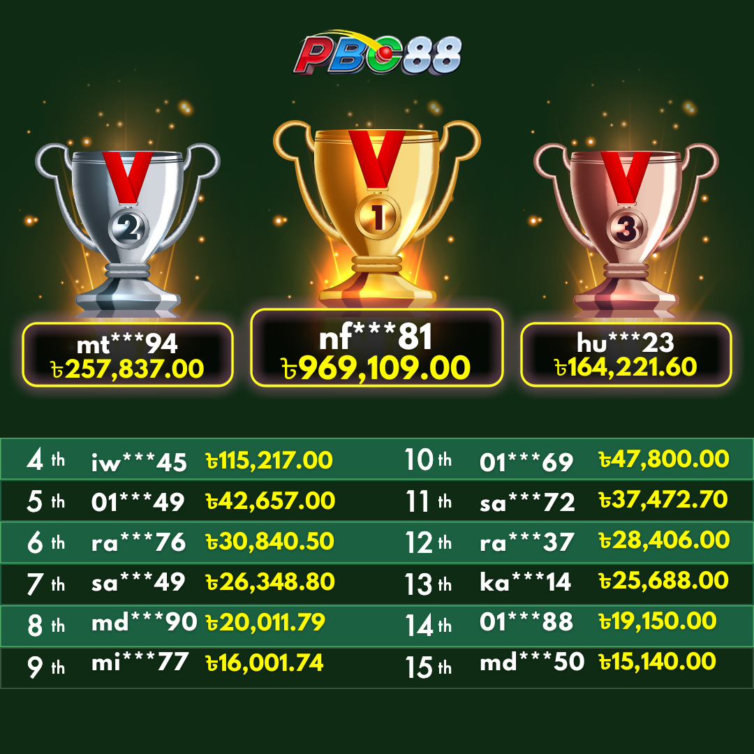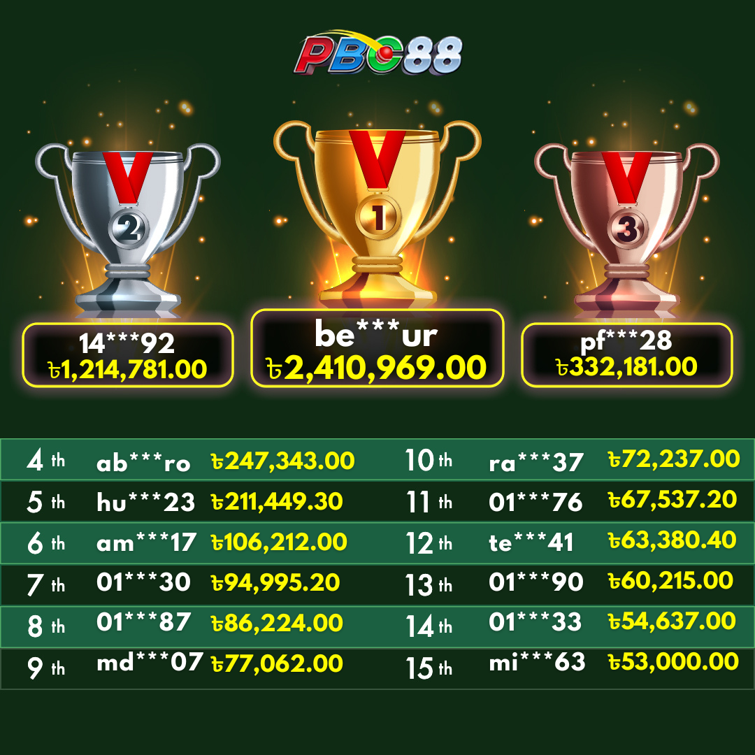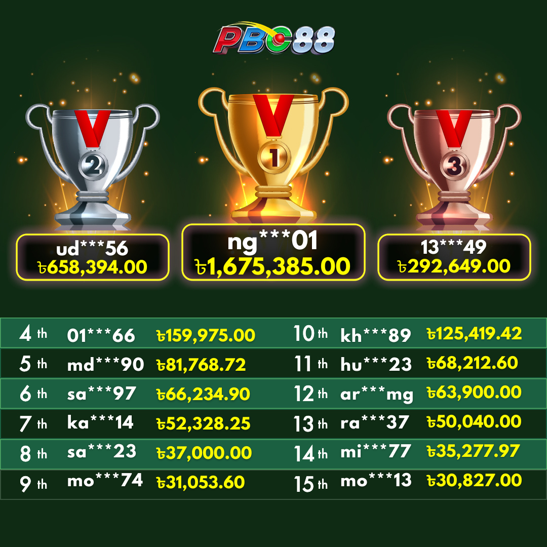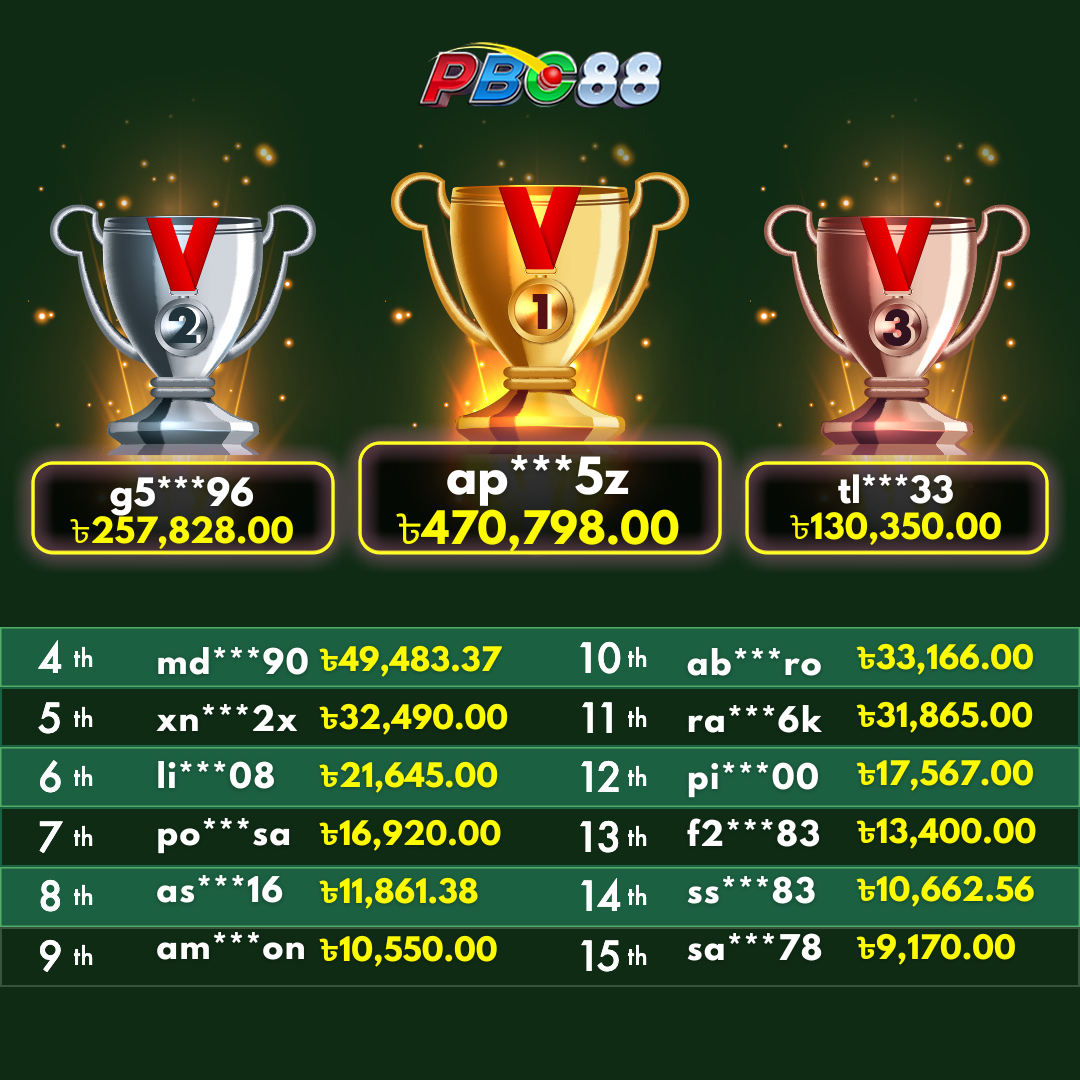 - দৈনিক শীর্ষ ১৫ জন বিজয়ীর বোনাস দিনে ১২:০০ টার আগে জারি করা হবে।