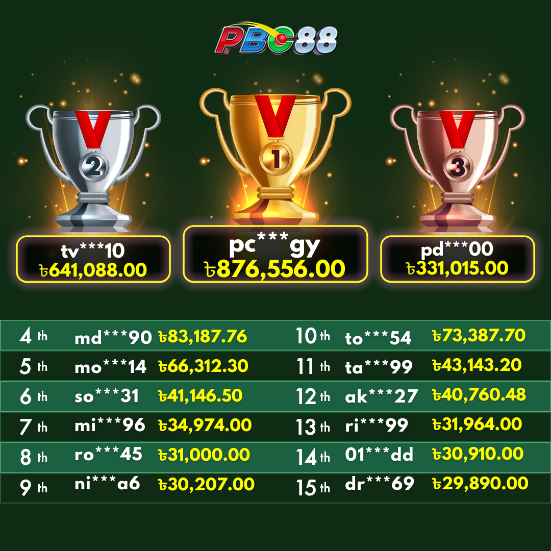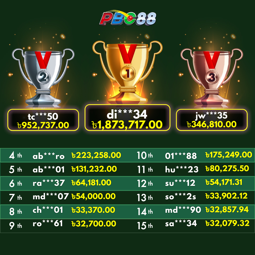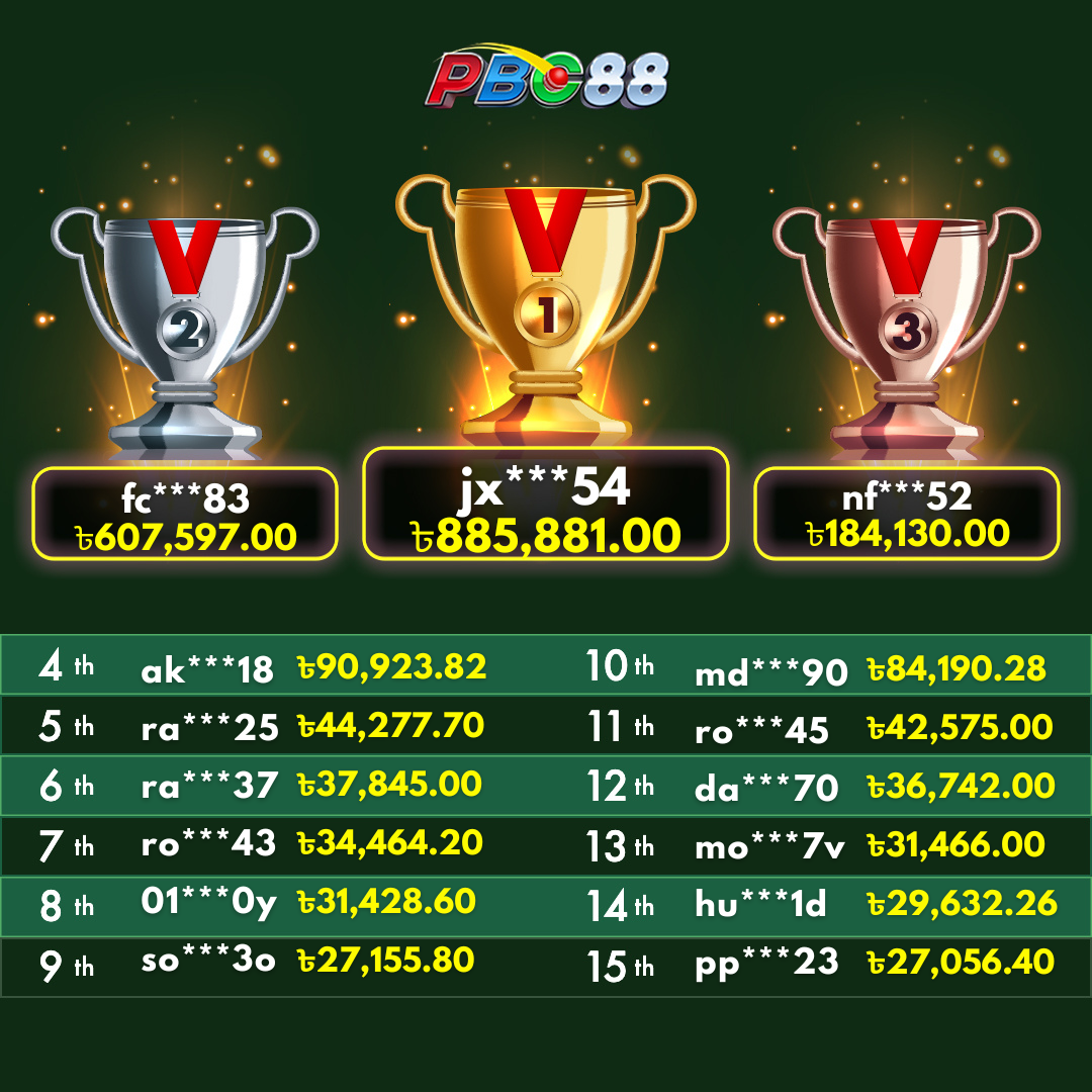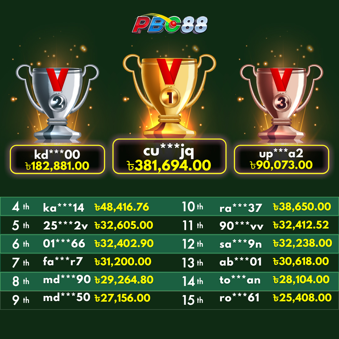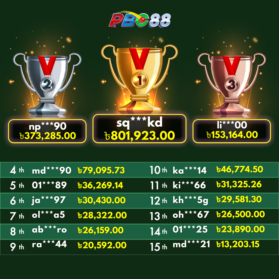 - দৈনিক শীর্ষ ১৫ জন বিজয়ীর বোনাস দিনে ১২:০০ টার আগে জারি করা হবে।
