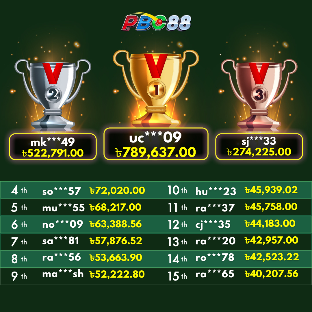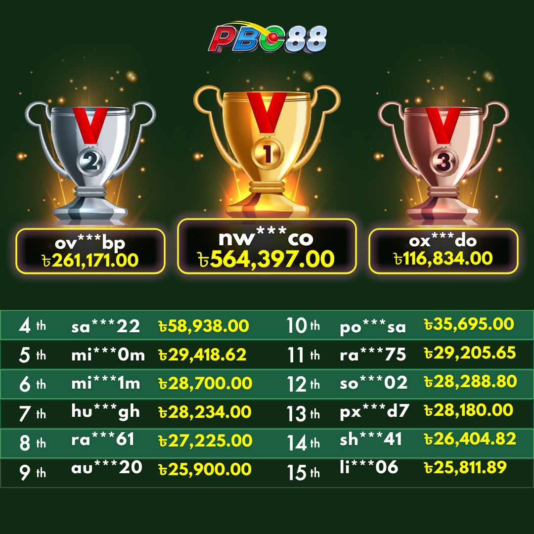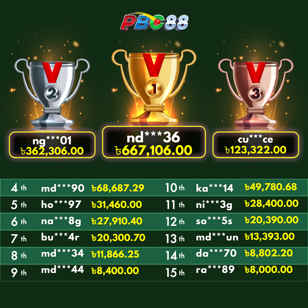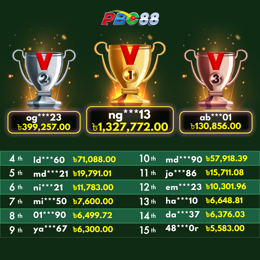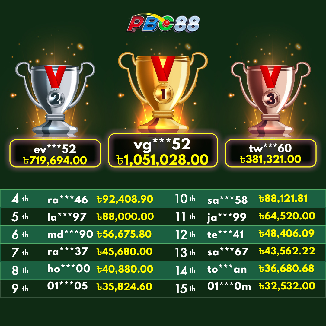 - দৈনিক শীর্ষ ১৫ জন বিজয়ীর বোনাস দিনে ১২:০০ টার আগে জারি করা হবে।