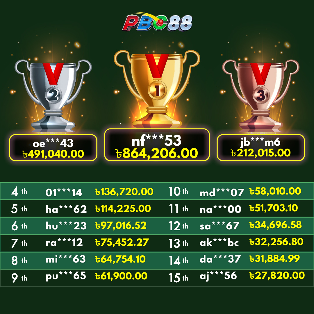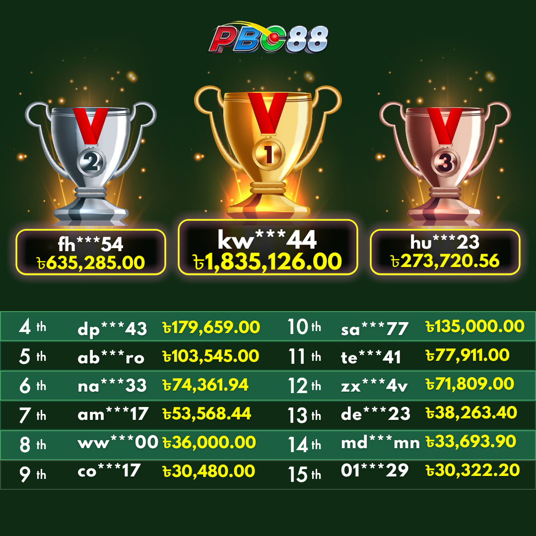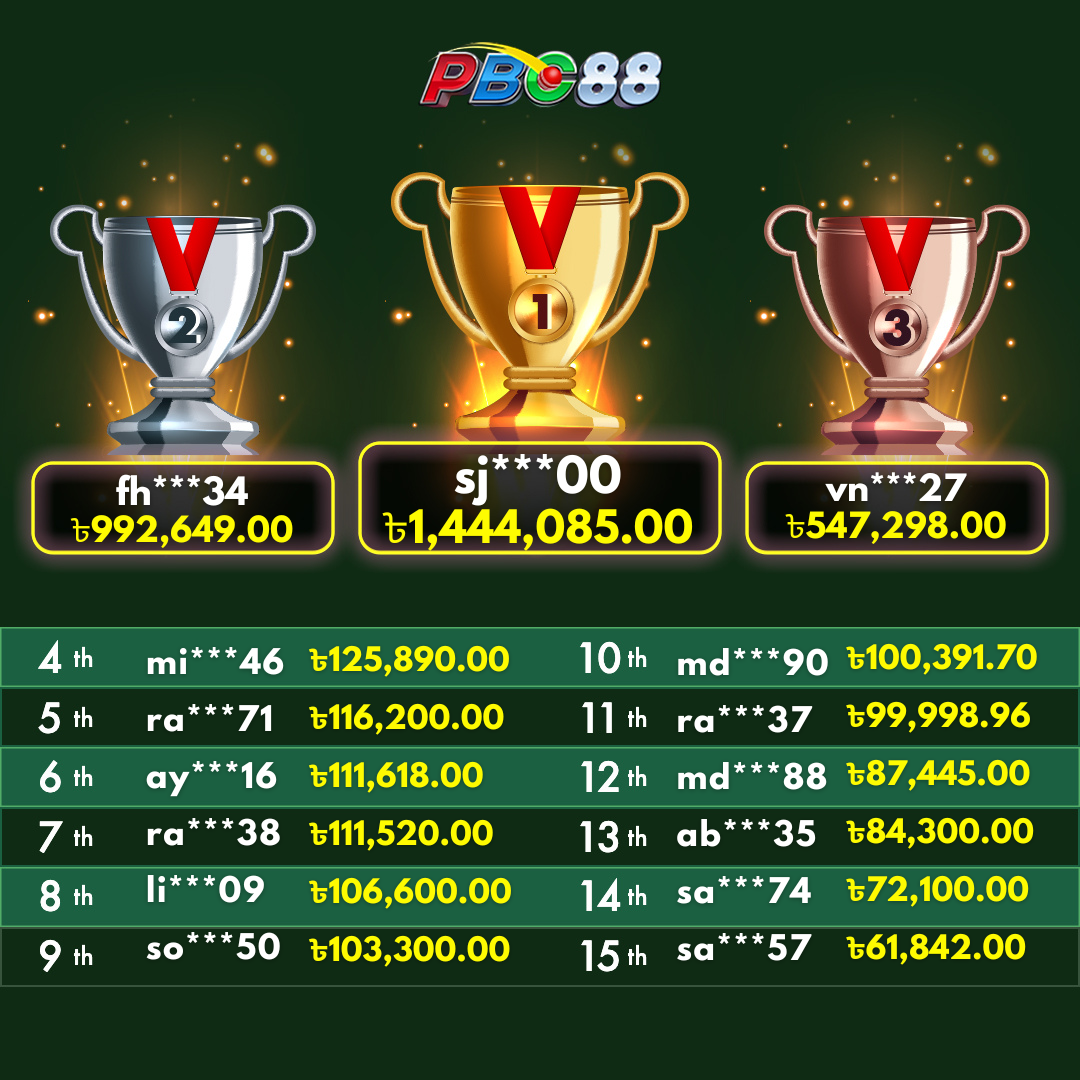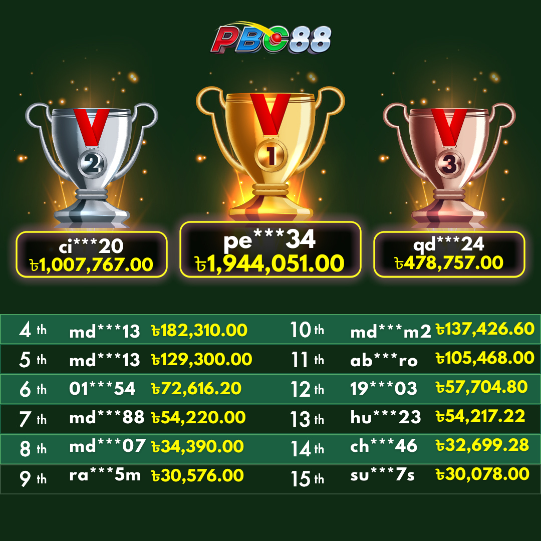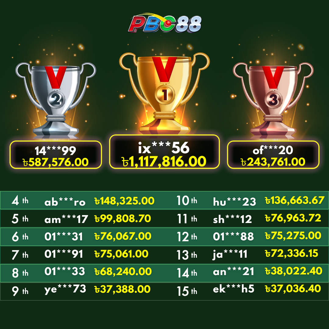 - দৈনিক শীর্ষ ১৫ জন বিজয়ীর বোনাস দিনে ১২:০০ টার আগে জারি করা হবে।